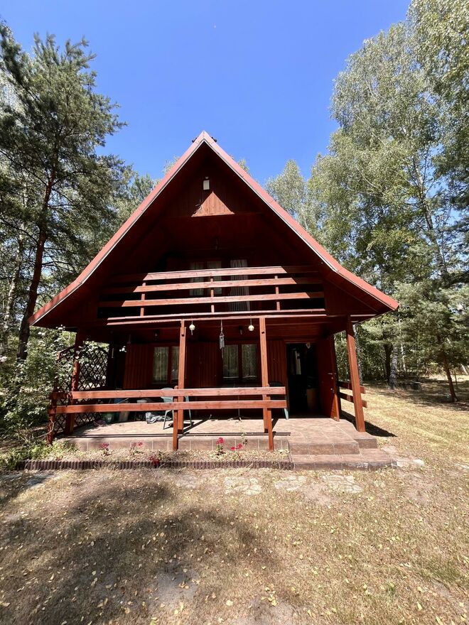? Drewniany domek rekreacyjny - niewielki, ale funkcjonalny, idealny jako baza wypadowa lub miejsce tymczasowego pobytu.